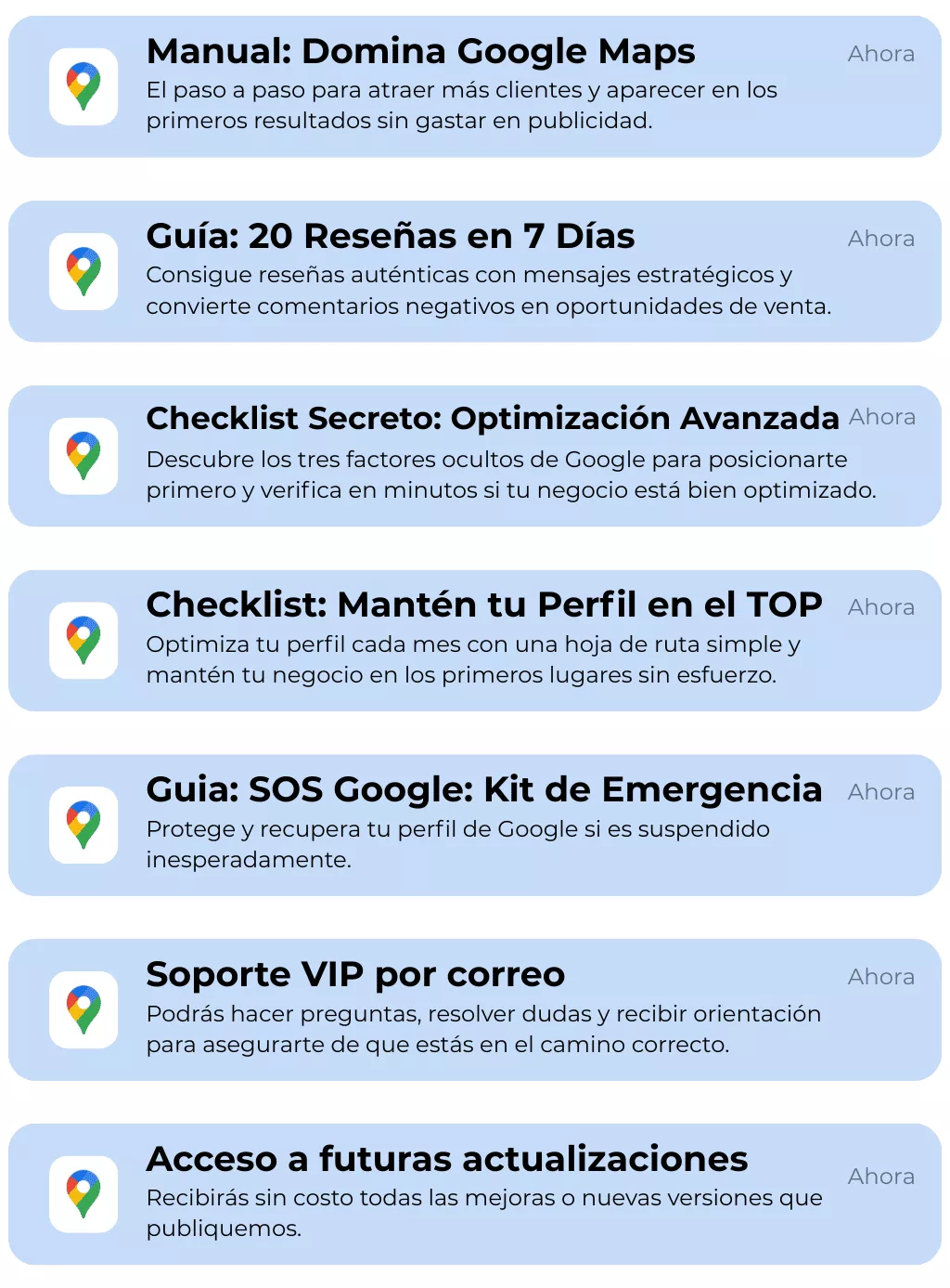 Con el Manual "Domina Google Maps" posiciona tu negocio en 7 días y aprende lo que las agencias cobran $200+ dólares mensuales